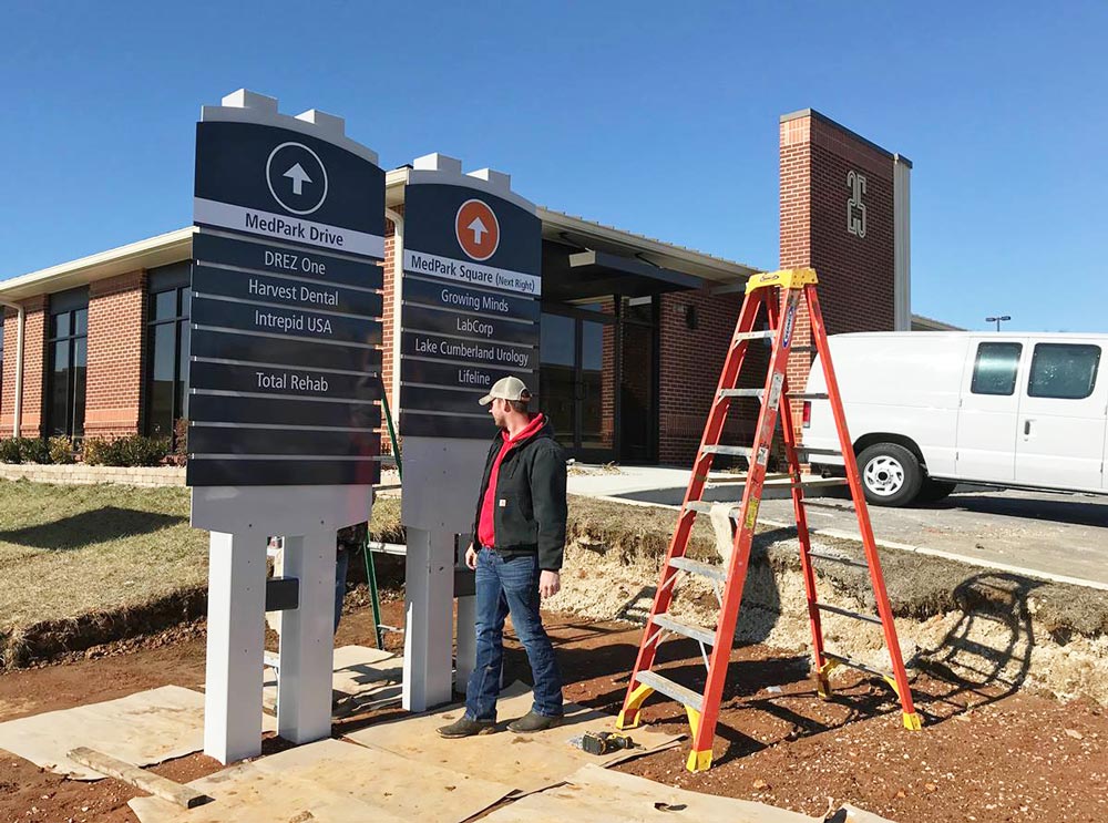 The park directories are nearing completion. Name panels are being installed that will point the way to 17 different businesses and medical practices in MedPark West. PLUS! Look in the background of this photo. The large numbers that make up half of the building signage for 25 MedPark Square also went up this week.