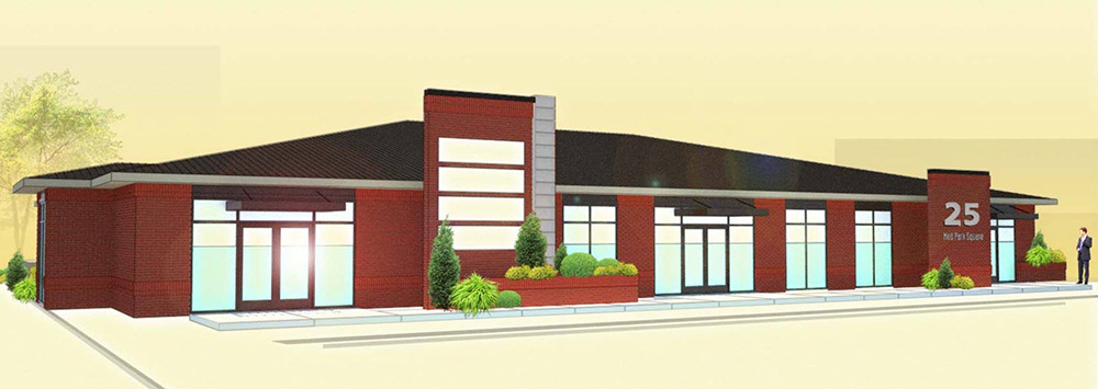 The second of four buildings that will eventually frame MedPark Square and Clocktower Plaza is now being constructed. 25 MedPark Square will include 8,800 square feet of lease space — probably 2-to-4 offices when complete.